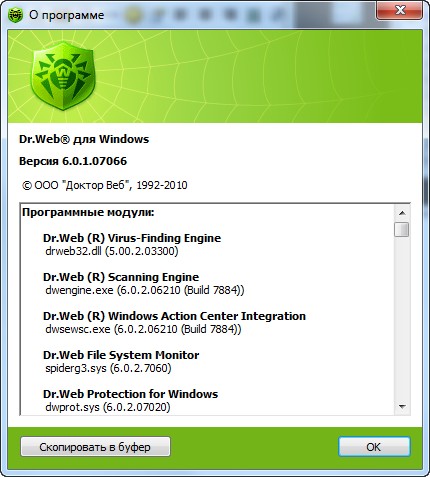 Dr.Web Anti-Virus представляет собой мощную комбинацию антивирусного сканера Doctor Web, резидентного сторожа SpIDer Guard и брандмауэра Dr.Web, глубоко интегрированных в операционную систему Вашего компьютера. Один из самых совершенных в мире эвристических анализаторов Doctor Web в сочетании с ежедневно обновляющимися вирусными базами представляют собой надежную защиту, непреодолимую для любого вируса, "троянского коня", почтового червя и иных видов вредоносного программного кода.
