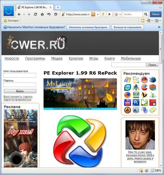 Скачать программу Maxthon 3.0.19.3000 (16,33 МБ):