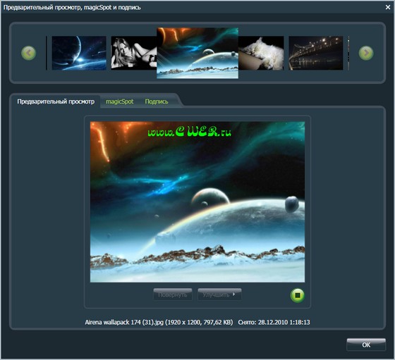 - Полно экранный предварительный просмотр видео с DVD-качеством.