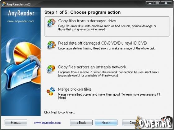 Часто необходимо считать данные с поврежденных "флешэк", дискет, поцарапанных DVD/CD-дисков, ненадежных сетей LAN (Wi-Fi). Обычными средствами это будет сделать, скорее всего, невозможно. Для таких случаев и существует программа AnyReader, которая выручит вас в подобной ситуации и легко прочитает, казалось бы, уже потерянную ценную информацию с любых носителей, которые доступны как буква диска в операционной системе Windows. Продолжение чтения (копирования) данных после возникающих ошибок или потери соединения в сети является уникальной возможностью программы AnyReader.