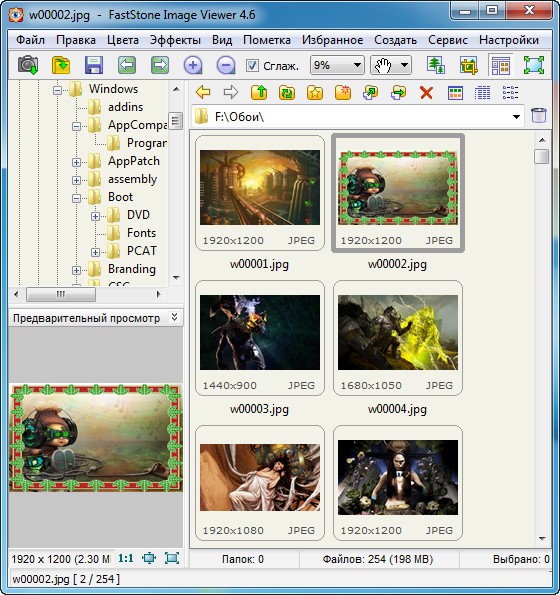FastStone Image Viewer - вьювер, редактор и конвертор графических файлов. Поддерживает все популярные форматы графики, включая JPEG, JPEG 2000, GIF, PNG, PCX, TIFF, WMF, BMP, ICO, RAW и TGA. Обладает простым и удобными интерфейсом, сочетая его с большим количеством полезных возможностей. Поддерживается пакетное изменение размеров и переименование картинок, удаление ненужных фрагментов, подгонка и изменение цветов, установка водяных знаков и т.д. и т.п. Имеется возможность создавать слайдшоу с более чем 150 эффектами перехода и фоновой музыкой, присутствует различные графические эффекты, ZOOM, полноэкранный режим, поддержка работы со сканером и т.д. Кроме всего этого, программа умеет делать скриншоты экрана, причем как экрана целиком, так и любой его части.