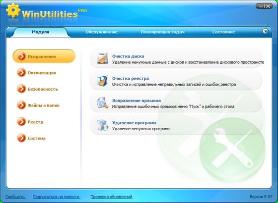 WinUtilities - набор утилит, предназначенных для настройки операционных систем семейства Windows. WinUtilities позволяет находить и удалять критические неисправности, неправильные ссылки и ключи в реестре, поможет правильно удалить приложения и программы, а также очистит историю интернета, cookies и многое другое. Также в программе есть возможность настроить автозапуск программ и изменять скрытые опции ОС.
