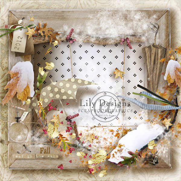 Превосходный скрап-набор Leaf In The Wind на тему осени и опадающих листьев. Пожелтевшая листва, винтажные зонтики, вязанный шерстяной свитер, рамки из дерева, белая тыква, фотоаппарат в чехле, ветви деревьев покрытые первым снегом и осенние фоны.