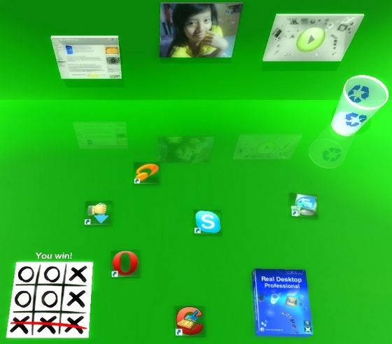 Real Desktop - утилита изменяющая вид Вашего рабочего стола, преобразующая его в 3D поверхность. Программа вдохнет новую жизнь в ваш Рабочий стол и превратит его в настоящий реальный рабочий стол. Насладитесь естественностью графики и невероятной динамикой и звуковым сопровождением. Программа использует DirectX и имеет физический движок, но на быстродействии компьютера это не сильно сказывается. После установки достаточно нажать на ярлык - и у вас уже 3D Рабочий Стол! Отключается таким же образом.